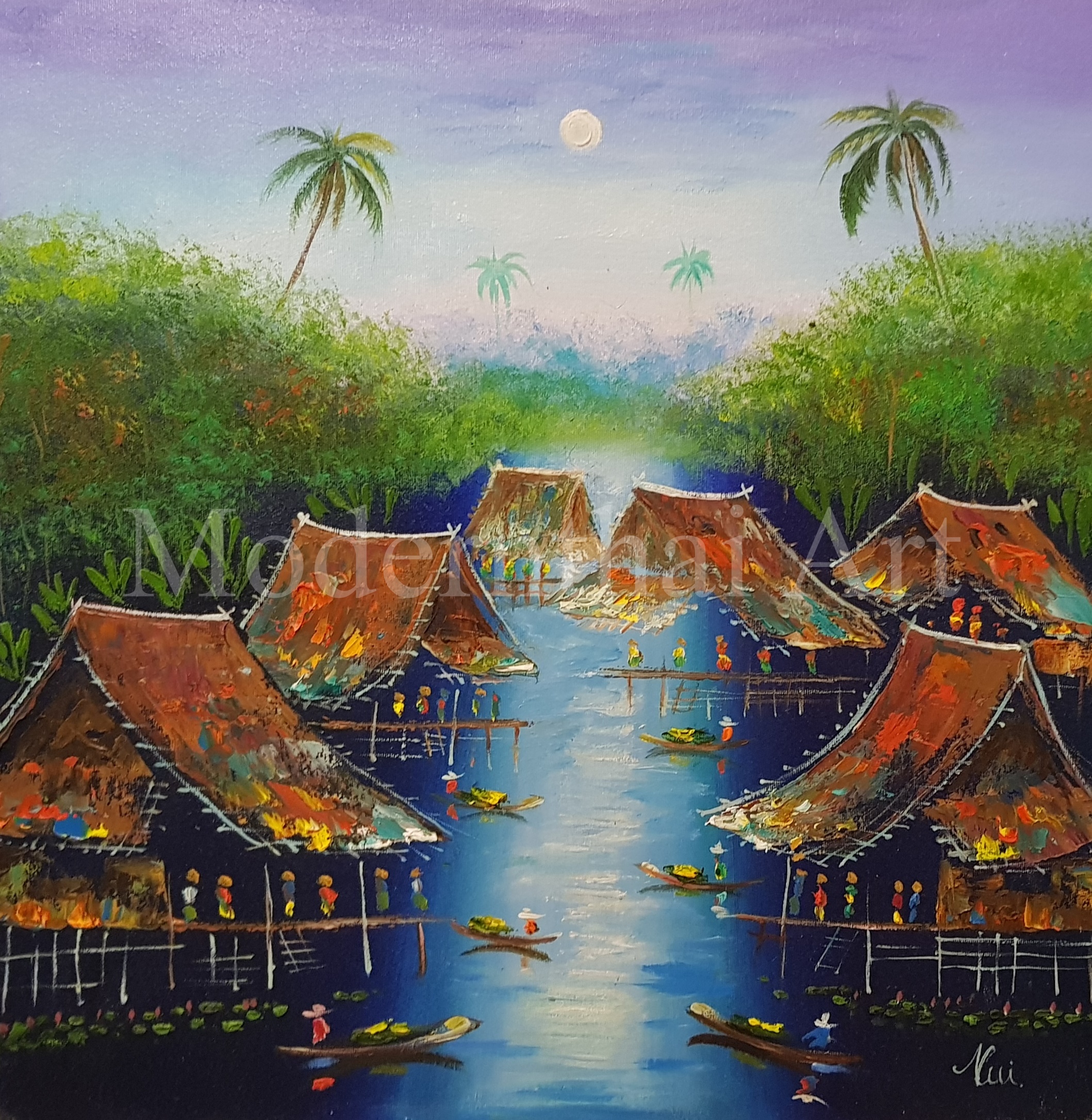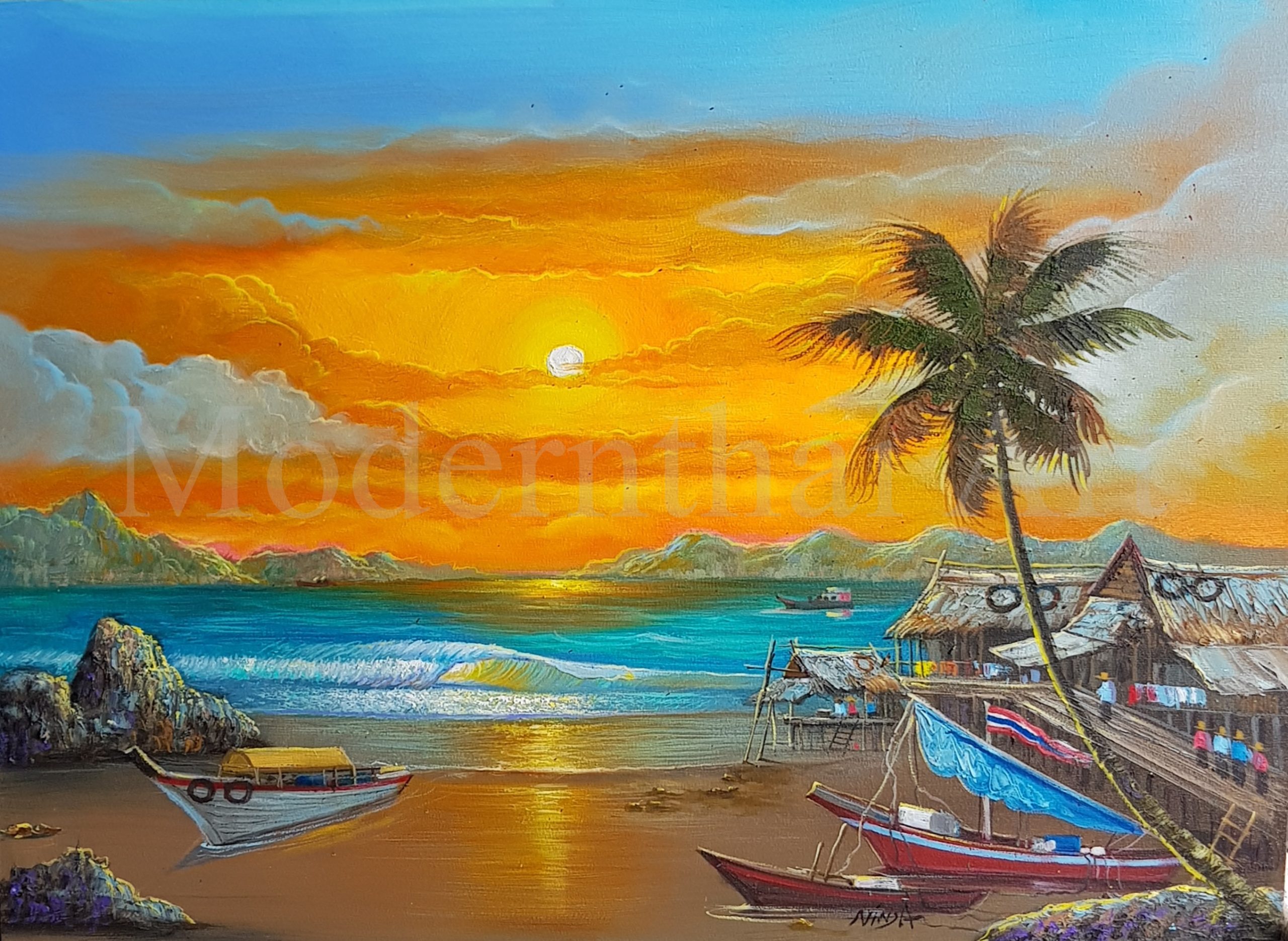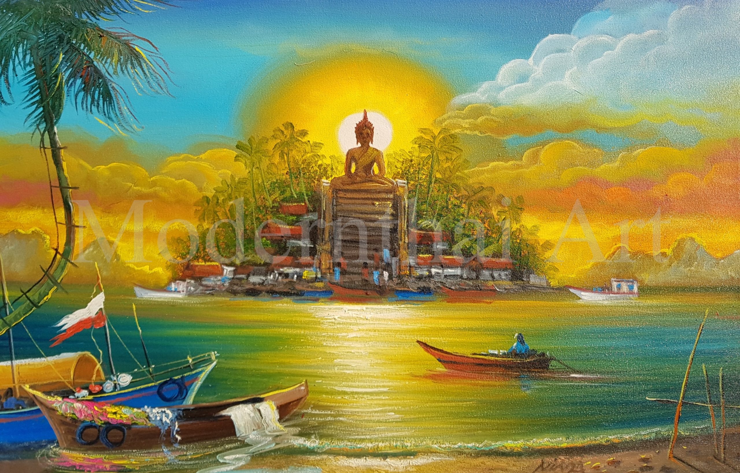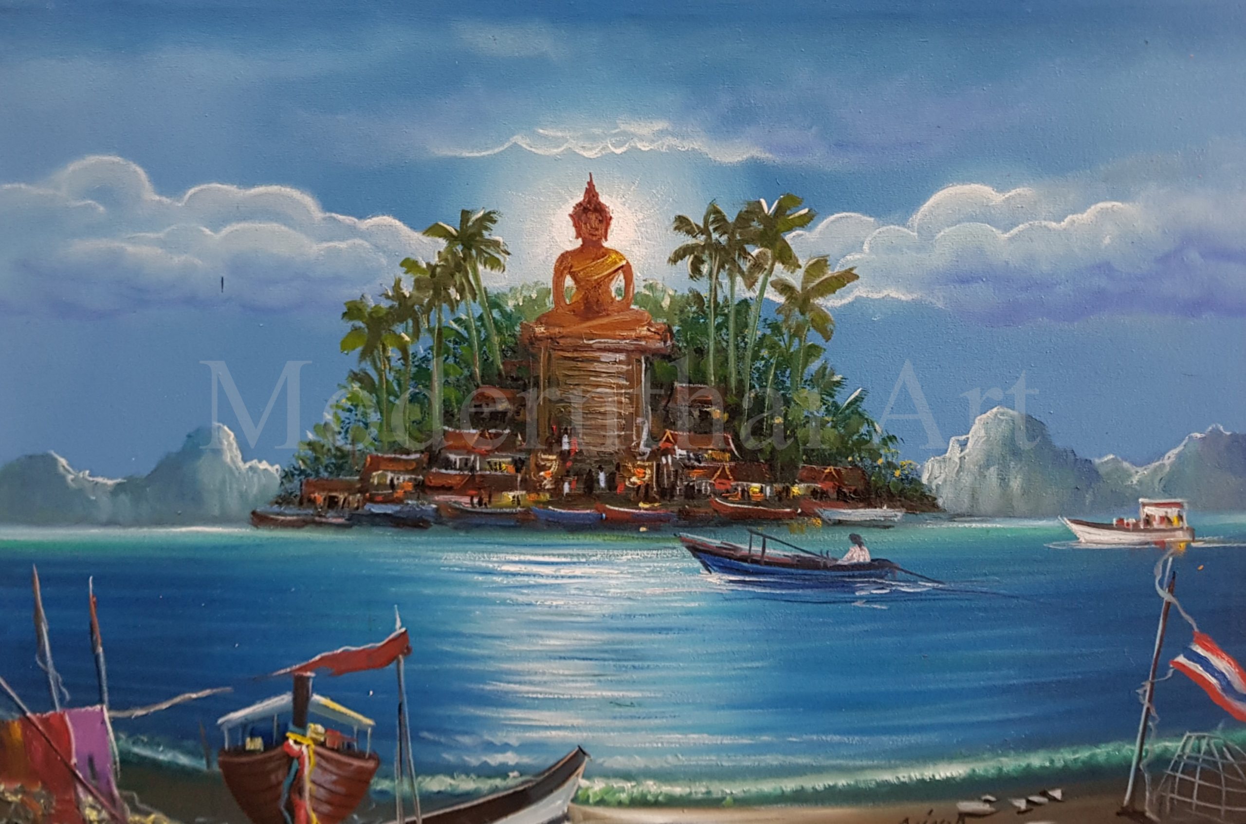 Welcome to the online gallery of The Modern Thai Art Gallery, where every painting tells a story of culture, tradition, and artistic excellence. Based in Koh Samui, Thailand, our gallery features 100% handmade oil paintings created by local Thai artists using time-honored techniques and rich, vibrant colors.