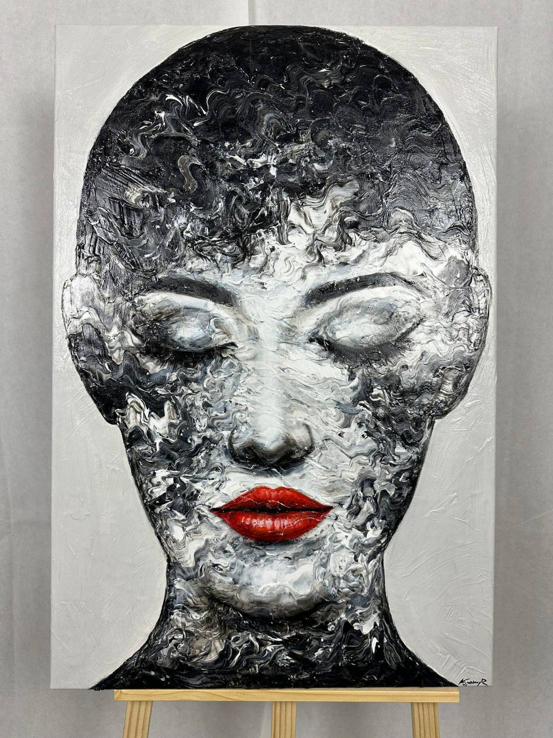 Featuring bold contrasts and expressive brushwork, this minimalist artwork captures the essence of grace and emotion through a modern, abstract style.