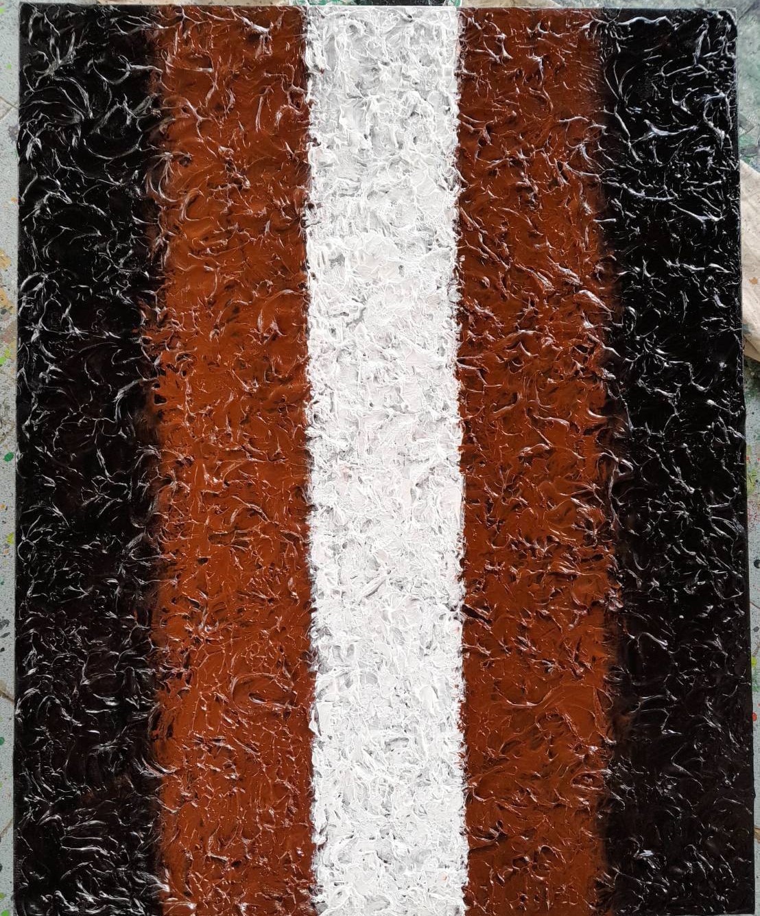 An abstract composition that intricately weaves together shades of black, brown, and white