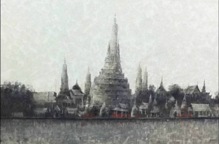 Celebrate Thailand’s cultural heritage with this stunning monotone Wat Arun painting, capturing the intricate beauty and majestic silhouette of Bangkok’s iconic temple in elegant black, white, and grey tones.