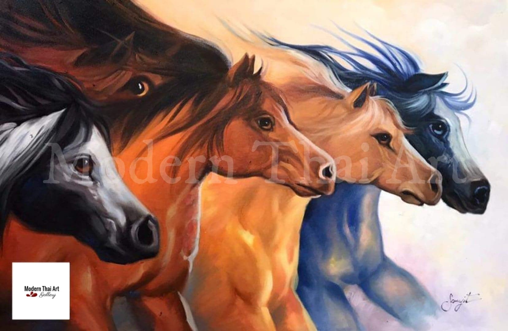 Horse race painting powerful animal wall art capturing speed, energy, and motion, perfect for dynamic interiors and equestrian-inspired decor.